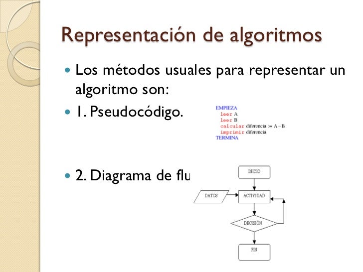 - Diagrama de flujo. El algoritmo es representado en diagrama de flujo, con cajas de acción, ligadas con lineas que muestran la secuencia de las acciones.Este es un flujo de control.